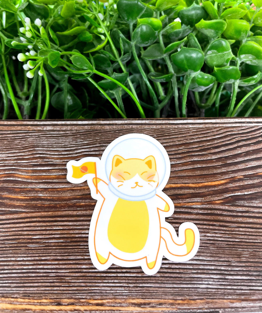 Astronaut Sitting on Crescent Moon, Die Cut Vinyl Sticker, Boho Fun,