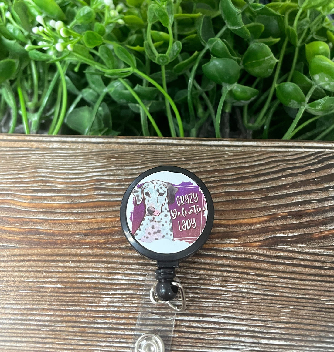 Crazy Dalmatian Lady, Retractable Badge Reel, , Boho Fun, Sublimation