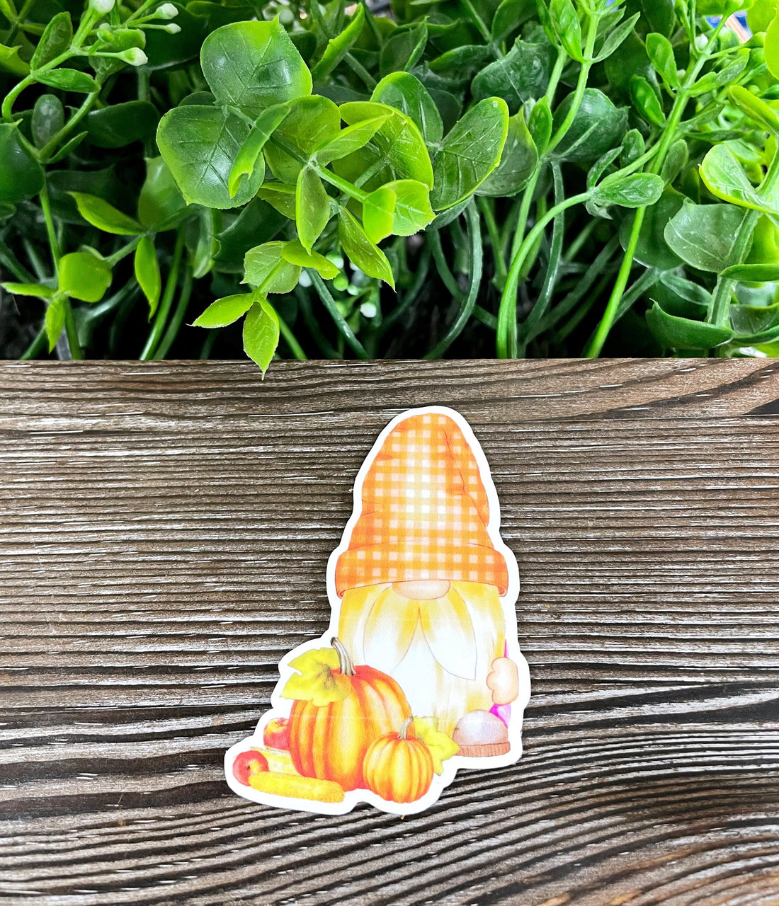 Fall Gnome w/ Pumpkins, Die Cut Vinyl Sticker, Boho Fun, Water