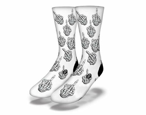 THROW THIS HALLOWEEN THE BIRD AS YOU LET ZOMBIES, SPOOKS AND TRICK OR TREATERS KNOW WHERE THEY CAN GO! HAVE A HAUNTED HALLOWEEN WITH THESE SILLY HALLOWEEN THEMED SOCKS!
