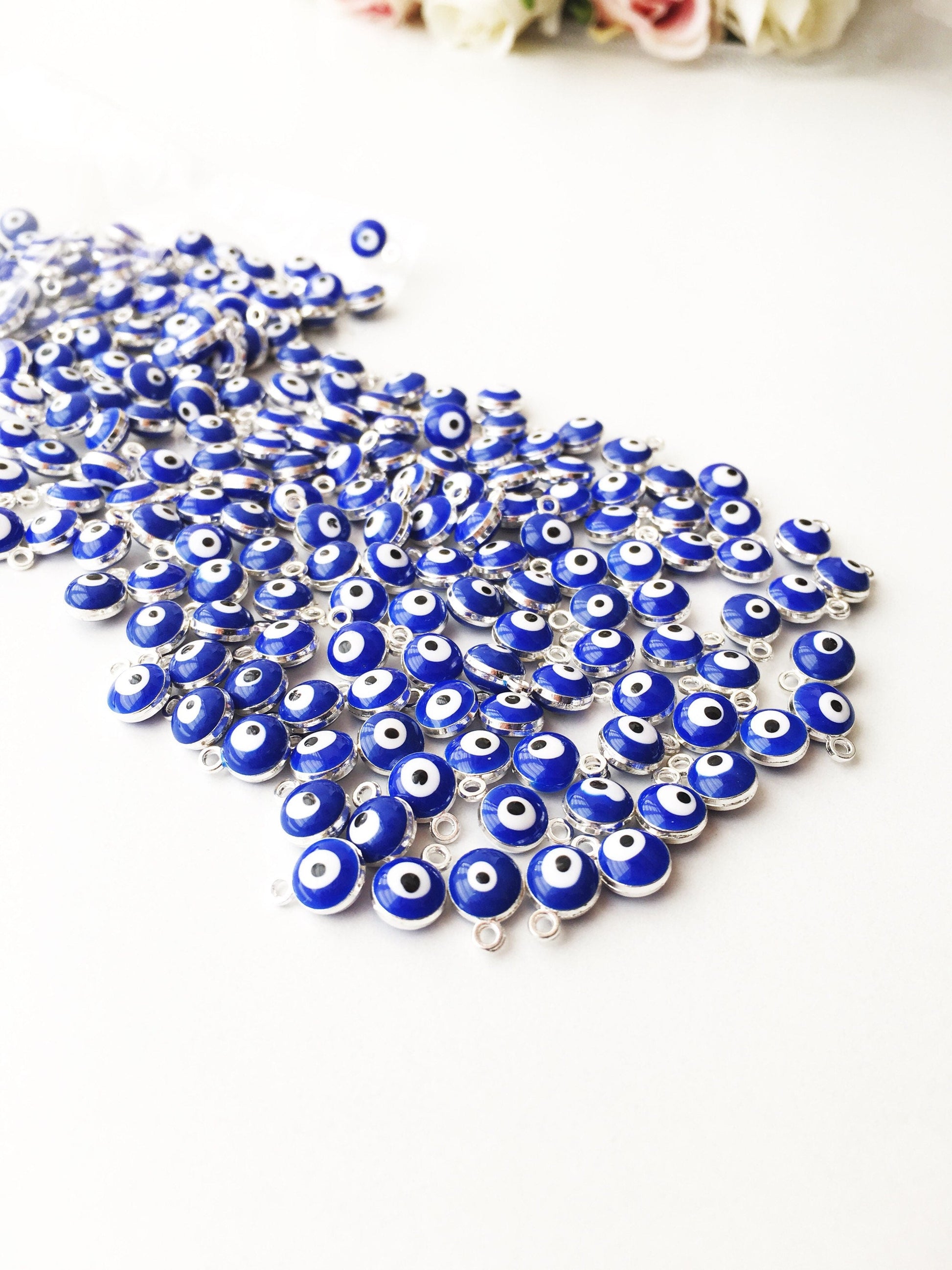 Blue evil eye charm 10 pcs, silver evil eye charm, evil eye necklace