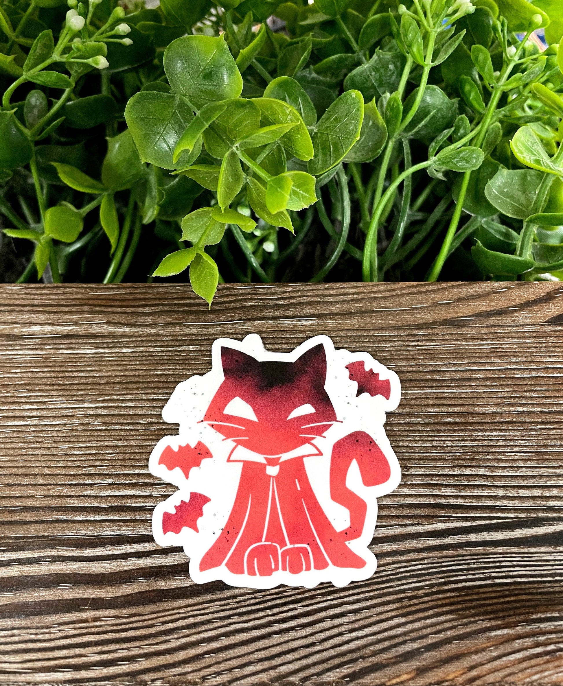 Halloween Orange Cat and Bats, Die Cut Vinyl Sticker, Boho Fun, Water