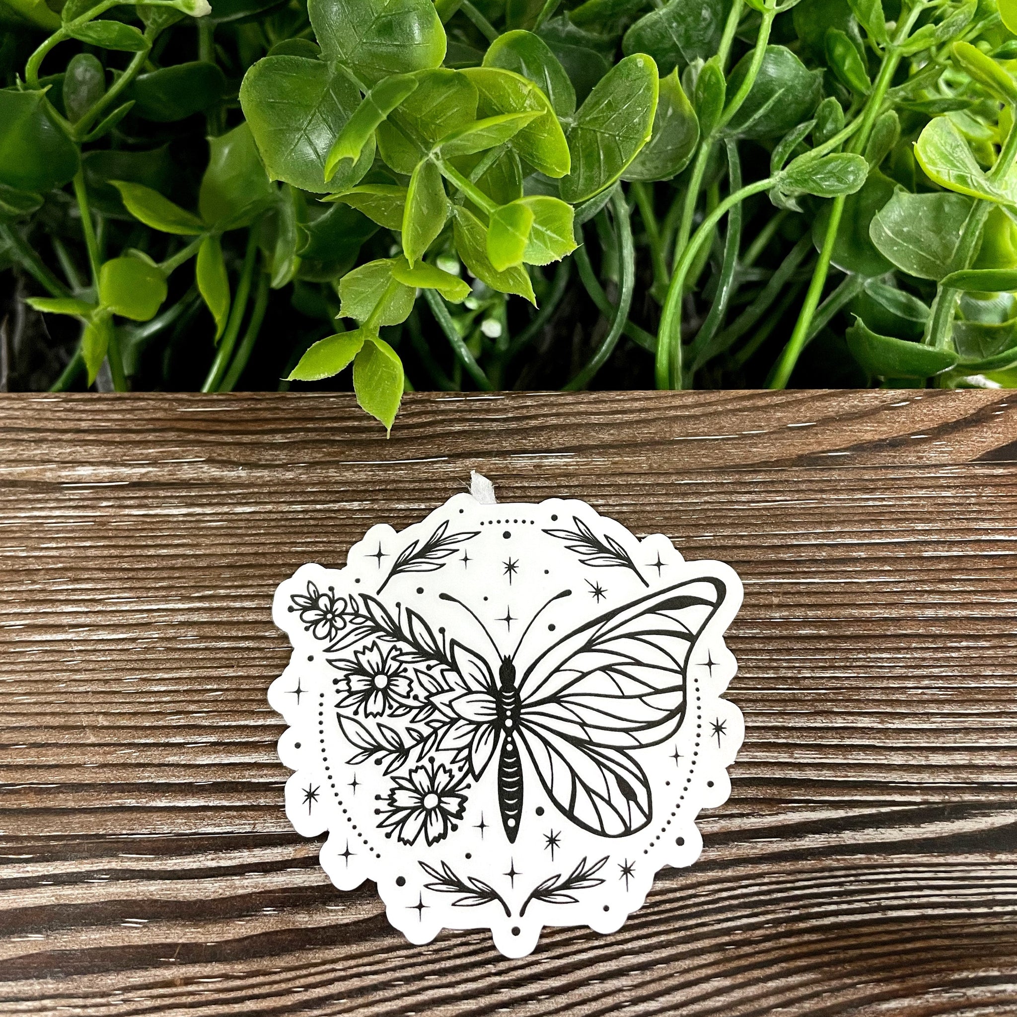 Butterfly w/ Flower Wing, Die Cut Vinyl Sticker, Boho Fun, Water
