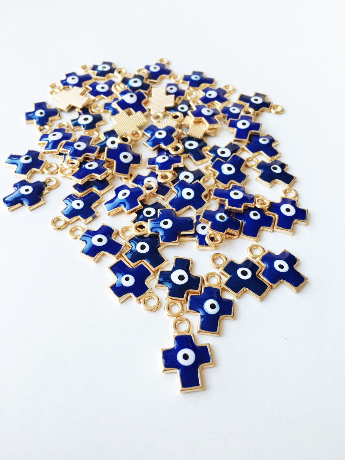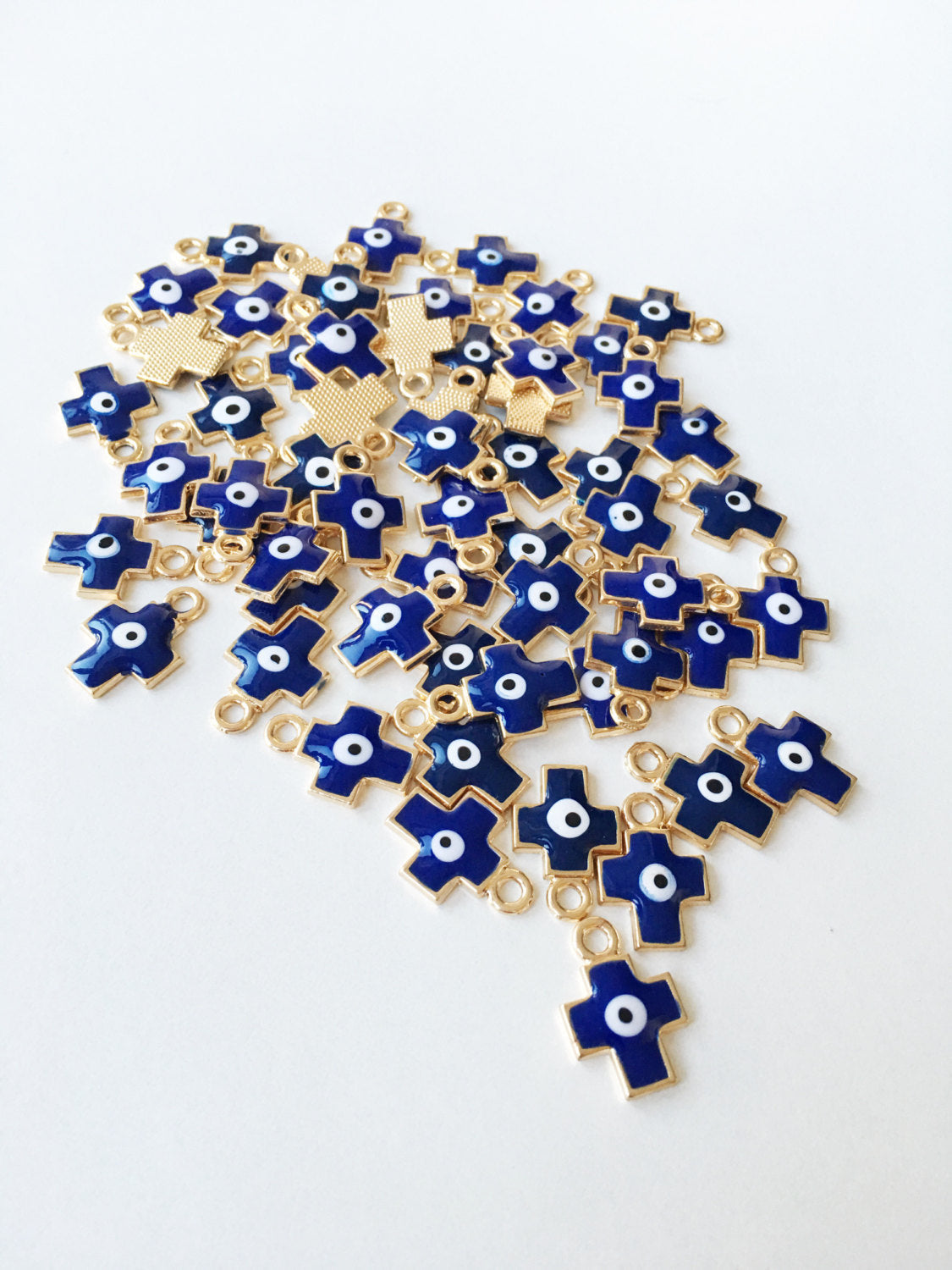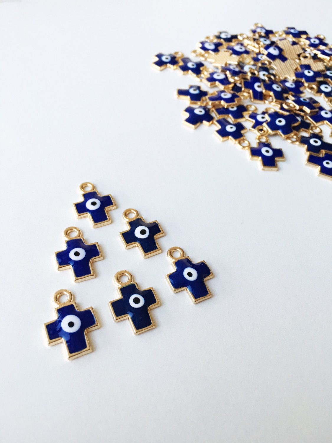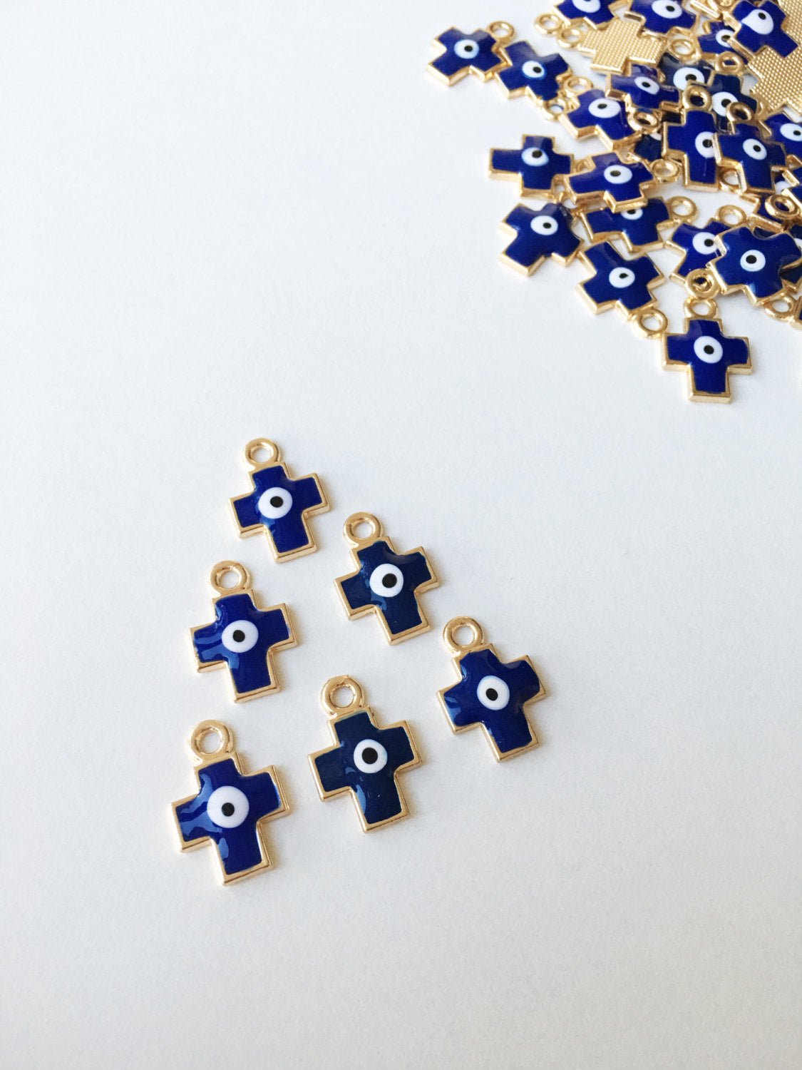 5 pcs cross evil eye charm, cross evil eye bead pendant, blue enamel evil eye charm, gold plated charm, nazar boncuk