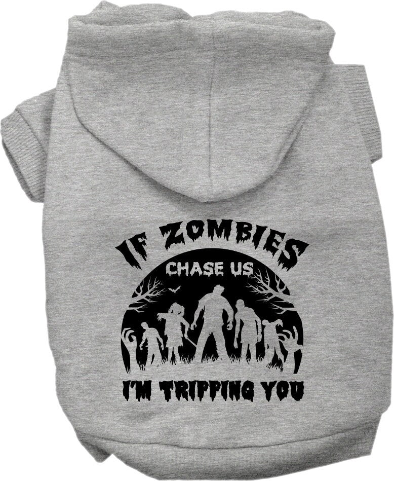 Halloween Pet, Dog & Cat Hoodie Screen Printed, "If Zombies Chase Us, I'm Tripping You"