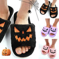 Halloween Pumpkin Fuzzy Slippers Soft Plush Cozy Open Toe Women Slides