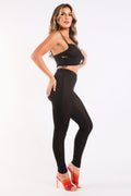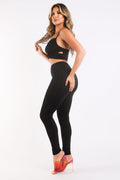 Mesh Contrast Sets Casual Sports Strappy Sleeve Top & Leggings BLACK