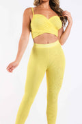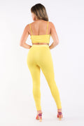 Mesh Contrast Sets Casual Sports Strappy Sleeve Top & Leggings YELLOW
