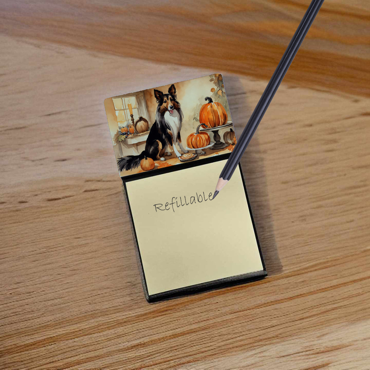 NEW Collie Fall Kitchen Pumpkins Sticky Note Holder Refillable Dispenser Self-Sticky Note Pads, Memo Pads Blank Desk Accessories