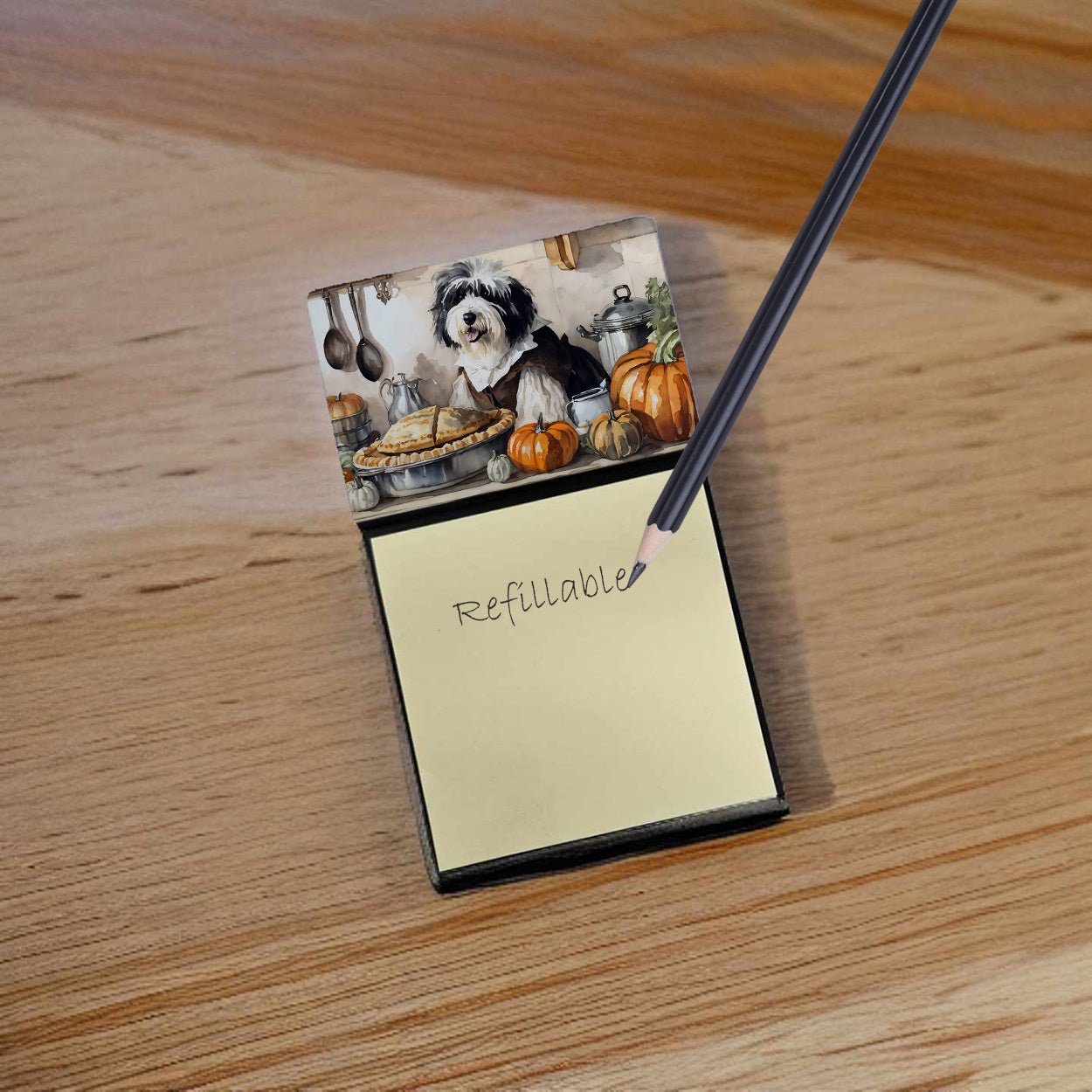 NEW Old English Sheepdog Fall Kitchen Pumpkins Sticky Note Holder Refillable Dispenser Self-Sticky Note Pads, Memo Pads Blank Desk Accessories