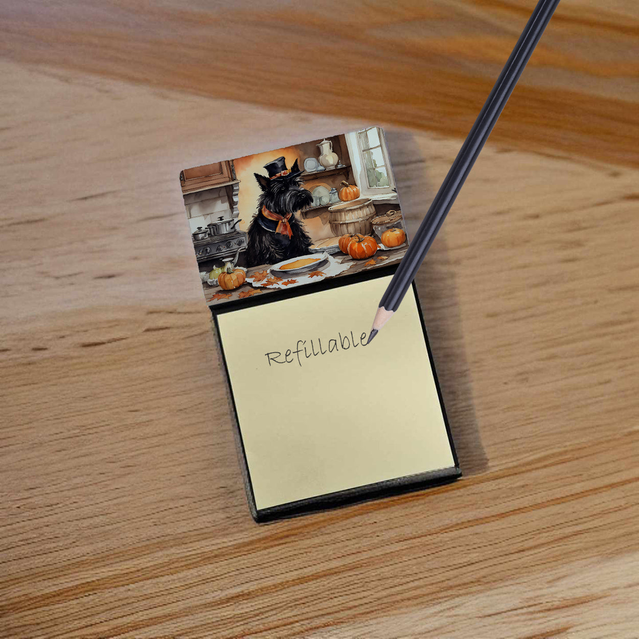 NEW Scottish Terrier Fall Kitchen Pumpkins Sticky Note Holder Refillable Dispenser Self-Sticky Note Pads, Memo Pads Blank Desk Accessories