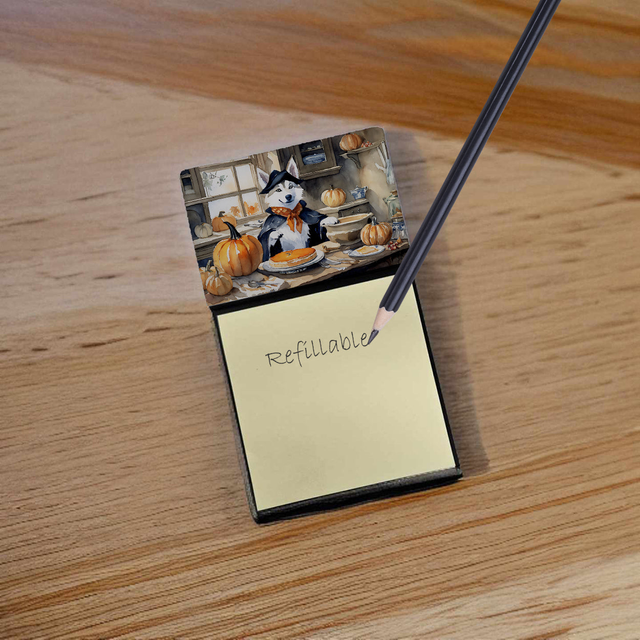 NEW Siberian Husky Fall Kitchen Pumpkins Sticky Note Holder Refillable Dispenser Self-Sticky Note Pads, Memo Pads Blank Desk Accessories