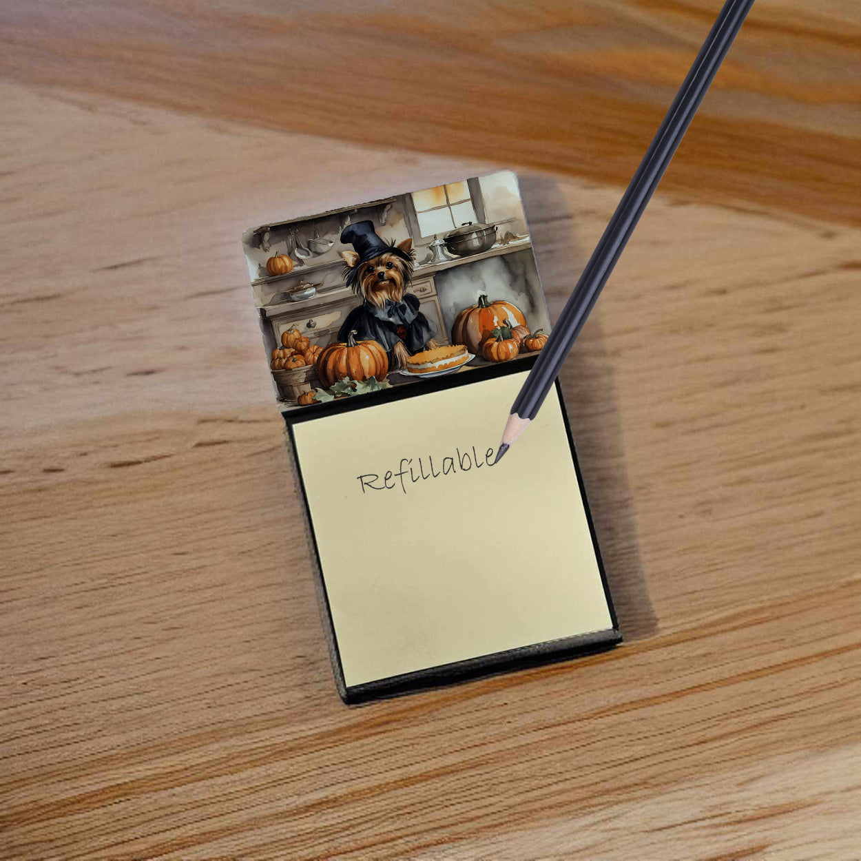 NEW Yorkie Fall Kitchen Pumpkins Sticky Note Holder Refillable Dispenser Self-Sticky Note Pads, Memo Pads Blank Desk Accessories