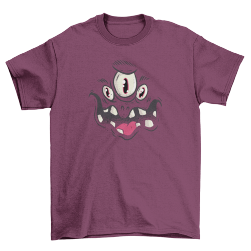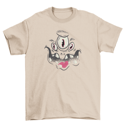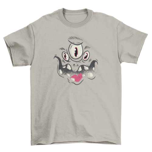 Black Monster Face Halloween T-shirt Design depicting an angry looking monster face with open mouth showing teeth.