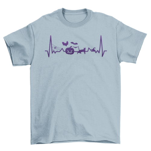 T-shirt design featuring an electrocardiogram line with Halloween designs in it