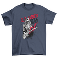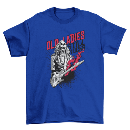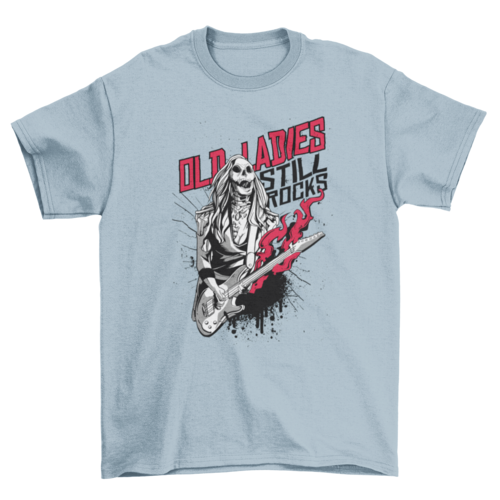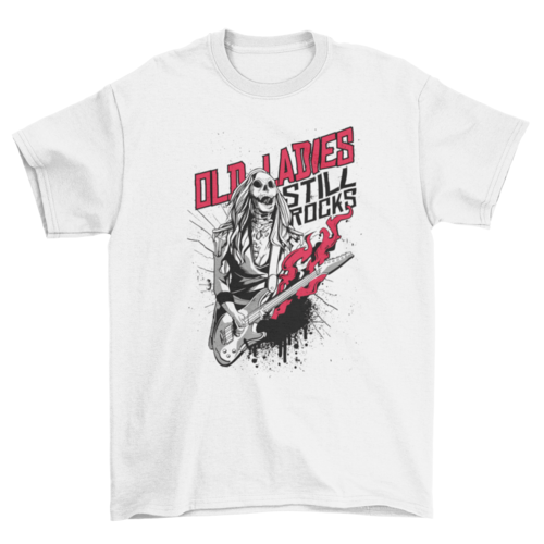T-shirt design featuring an old woman zombie rocker with the quote OLD LADIES STILL ROCK
