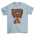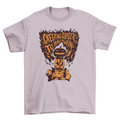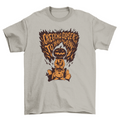 Scary t-shirt design featuring a pumpkin monster and the quote "Creeping closer to halloween".