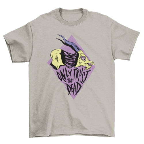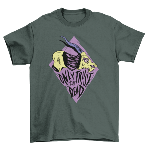 Spooky halloween t-shirt design featuring a monster with the quote "Only trust the dead".
