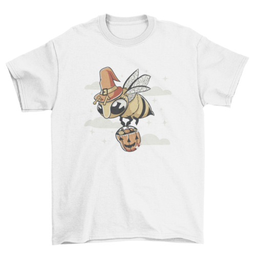 Lovely t-shirt design that includes a cute bee dresses as a witch.