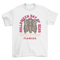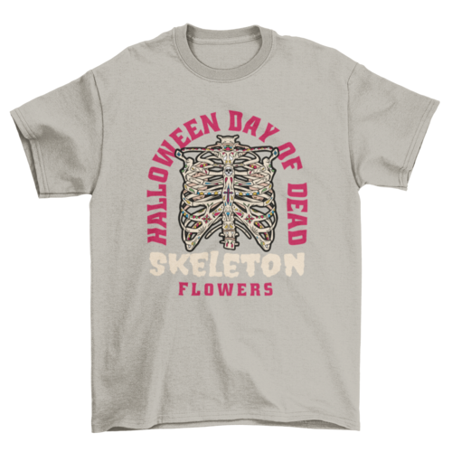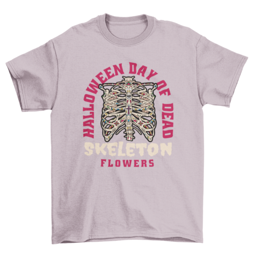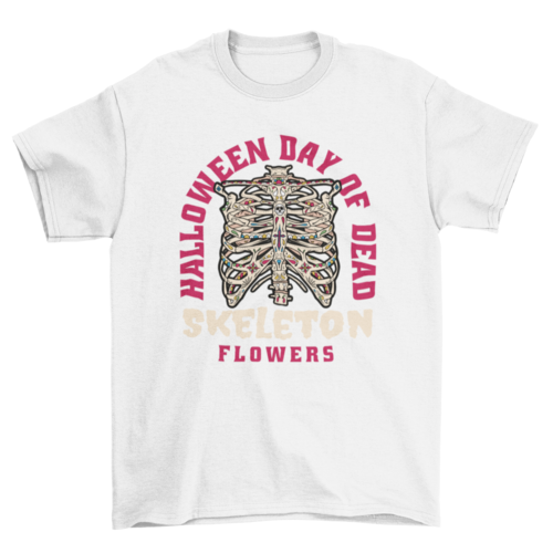 Amazing t-shirt design featuring a skeleton body with the quote "Halloween day of the dead skeleton flowers".