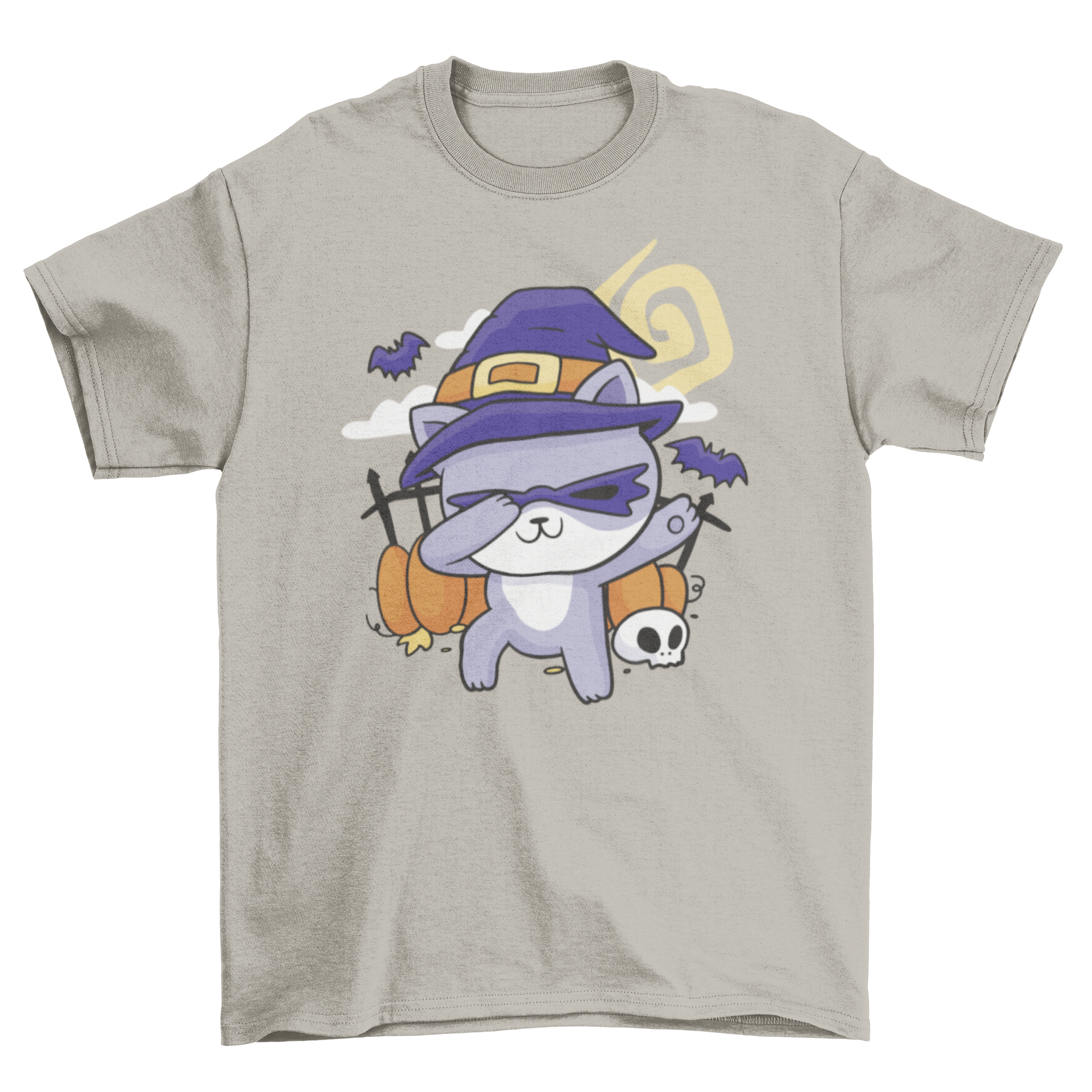 Awesome t-shirt design that features a cat dressed as a witch for halloween dabbing.