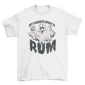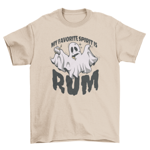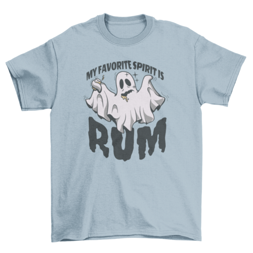 Cool Halloween t-shirt design of a drunk ghost and the quote 'My favorite spirit is rum'.