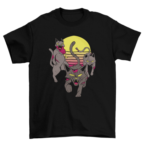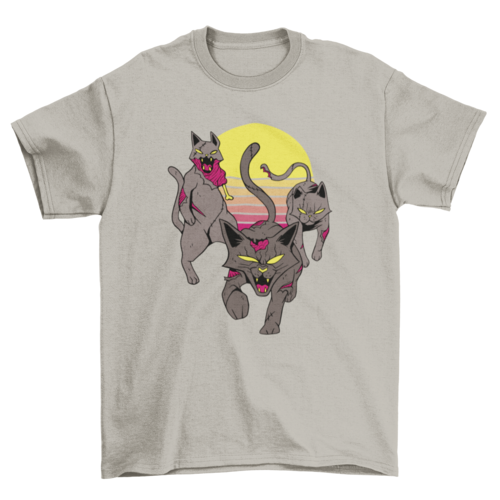 Awesome cat zombies t-shirt design featuring three monster-cats.