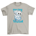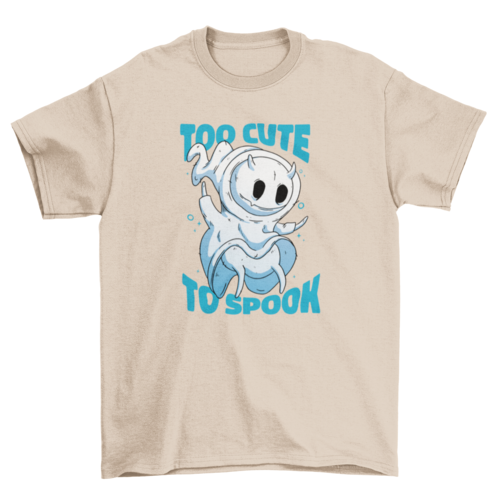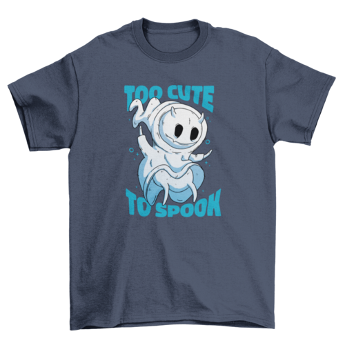 Cool t-shirt design that features a ghost creature and the quote "Too cute to spook".