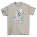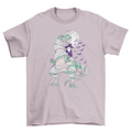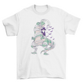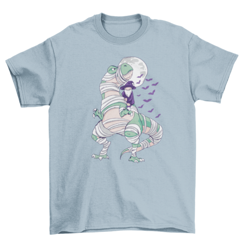 Look at this awesome t-shirt design of a t-rex mummy and a wizard!